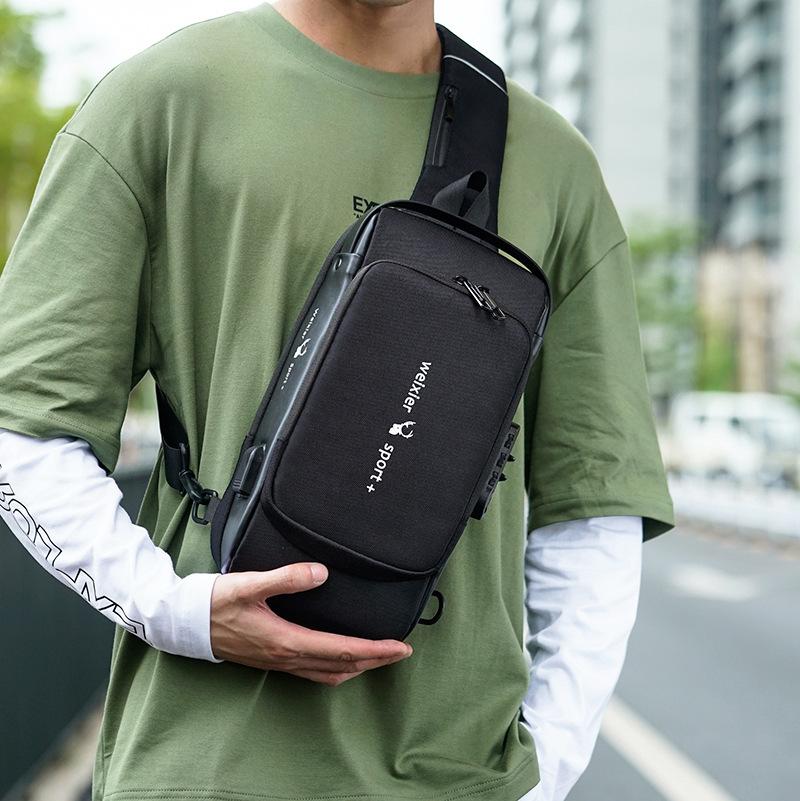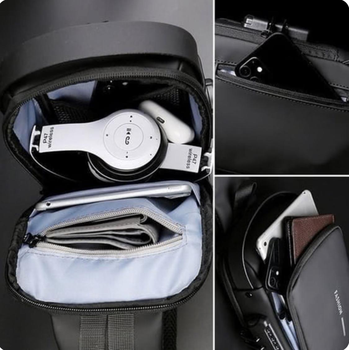 ✅Morral de hombro Unisex con sistema de seguridad en sus cierres y puerto de carga.⚡🔋