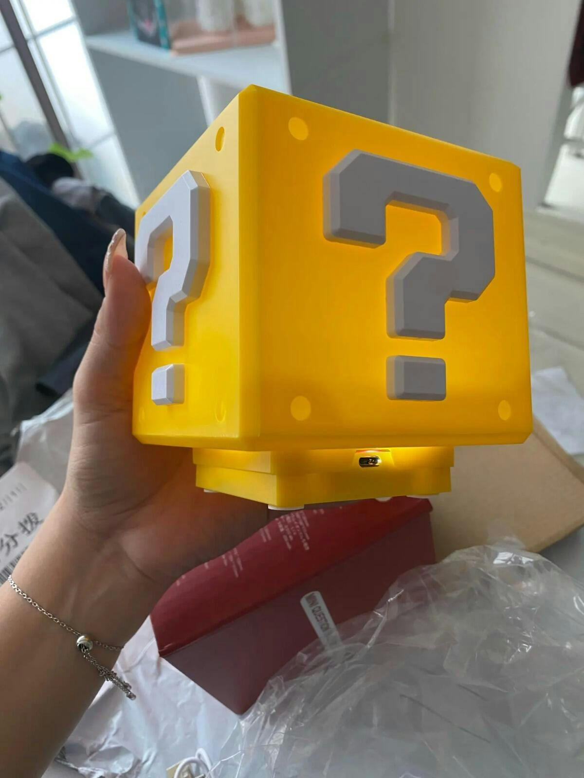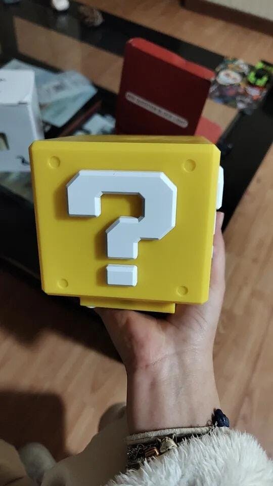 🎯 Divertida lámpara de BLOQUE QUESTION "?" Mario Bros totalmente RECARGABLE con sonidos retro, alusivos al juego, ideal para niños y aquellos no tan niños que les gusta recordar viejos tiempos